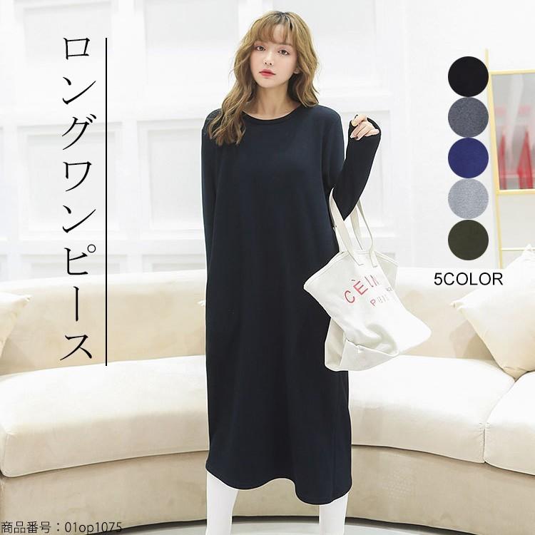 ワンピース レディース ロングワンピース 長袖 綿 マキシ丈 ミモレ Aライン ゆったり Uネック Vネック 2style 無地 体型カバー 厚手 あったかい 防寒 秋冬 01op1075 Tsj 福丸 通販 Yahoo ショッピング